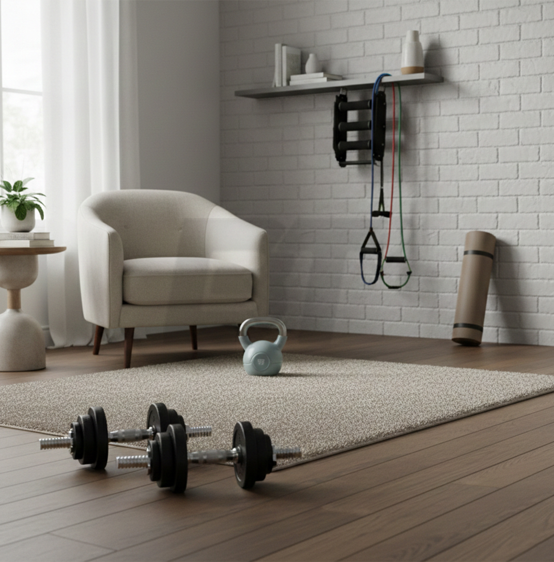 Evde kas hacmi kazanmanın temel prensibi, kaslara yeterli mekanik yük uygulayabilmektir. Yani kası zorlayacak direnç oluşturulmalıdır. Bu noktada minimum ama işlevsel ekipmanlar büyük avantaj sağlar. İlk ve en önemli ekipman ayarlanabilir dambıllardır. Farklı ağırlık plakalarıyla yükü kademeli artırabilmek, progresif overload (aşamalı yüklenme) için kritik öneme sahiptir. Göğüs, sırt, omuz, kol ve bacak egzersizlerinin büyük bölümü dambıllarla etkili şekilde yapılabilir.