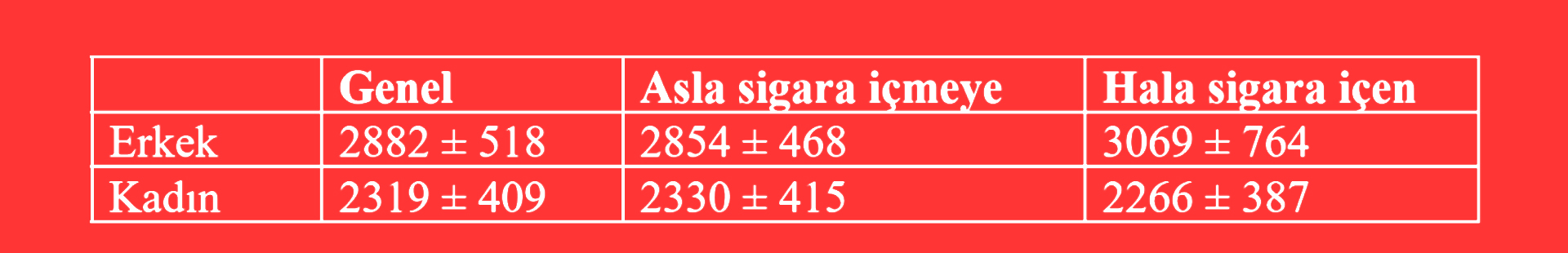 Sigara içmenin toplam enerji harcamasına etkisi: