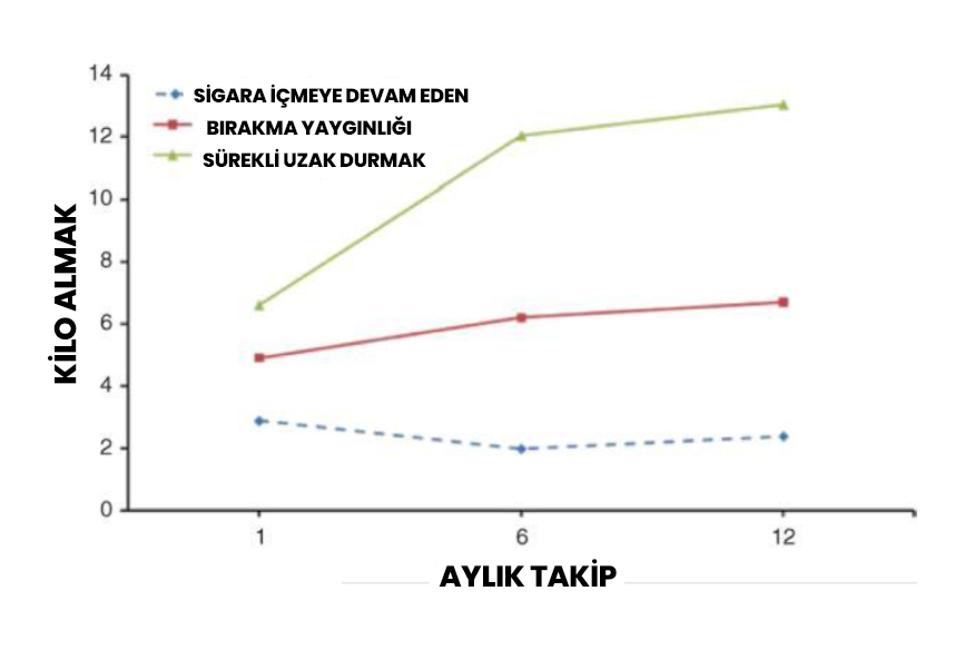 - Sigarayı bıraktıktan kilo alımının büyük çoğunluğu ilk 6 ay içerisinde gerçekleşmektedir.